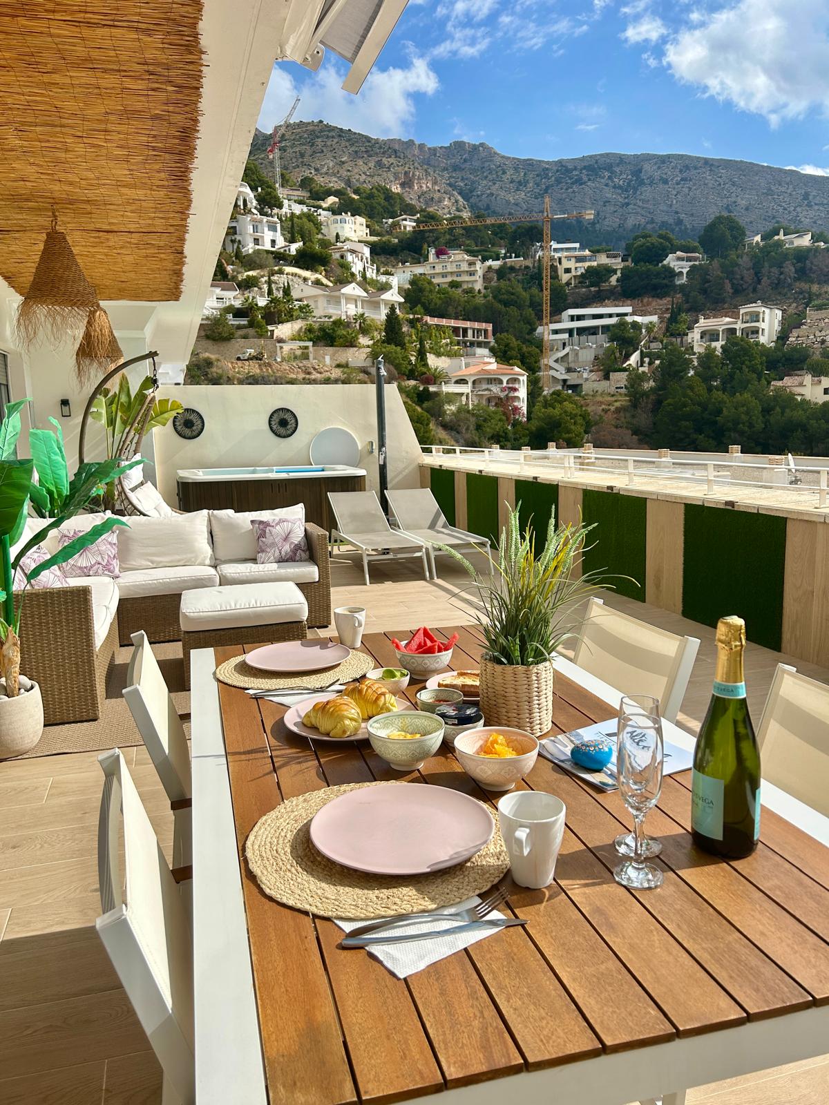 Sumérgete en la esencia de nuestro apartamento a través de esta galería. Descubre cada rincón: desde la amplia terraza con jacuzzi privado hasta las impresionantes vistas al Mediterráneo y los detalles que hacen de Carla Hills Altea un lugar único para disfrutar.